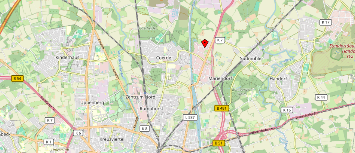 Die Praxis befindet sich im Stadtteil Münster-Coerde, in unmittelbarer Nähe zum Baumarkt „Hornbach“.